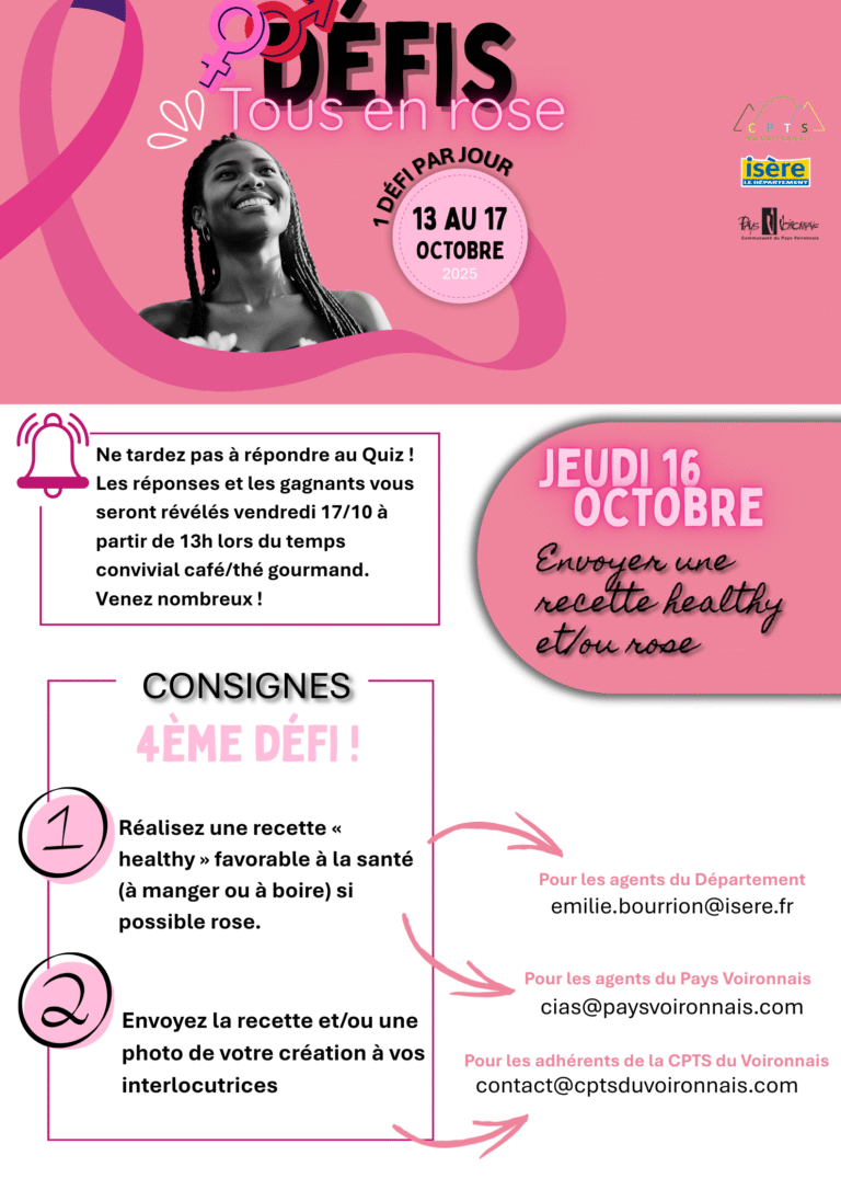 - Jeudi 16 : envoyer une recette healthy et/ou rose